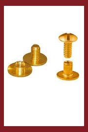 Brass Book Binding Screws are perfect for making swatches, brochures, albums and menus. They are easy to use, punch a 6mm hole in the product, insert the base through the hole and put in the screw. They are also easy to undo if you need to alter anything. Book Binding screw sizes vary from 2mm to 50mm. They are generally sold in packs of 100 to 1000 but special packing arrangements can be made on the customers demand. These particular screw posts are machined in our Jamnagar factory India from solid brass and are elegant and finely finished. This helps them in standing out from their aluminum counterparts. The male and female sections, both have slotted flat ends which allow for tightening at either end.