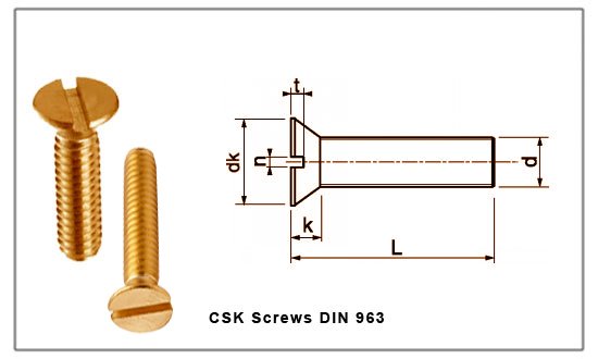 Slotted Flat Head / CSK Head Machine Screws DIN 963 Brass